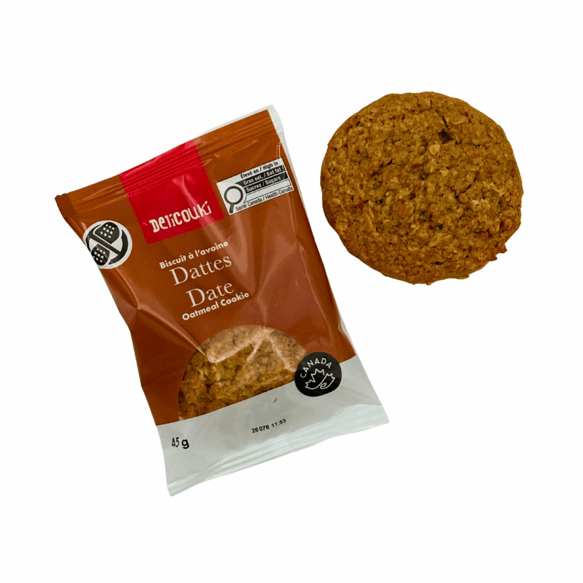 Wheat flour, Sugars (sugar, brown sugar, apple puree (apples, ascorbic acid), fancy molasses), Rolled oats, Margarine (canola oil, modified palm and modified palm kernel oils (soy)), Water, Buckwheat flour, Canola oil, Dried apples, Calcium propionate, Salt, Sodium bicarbonate, Natural flavour, Modified corn starch, Xanthan gum, Guar gum, Spices.